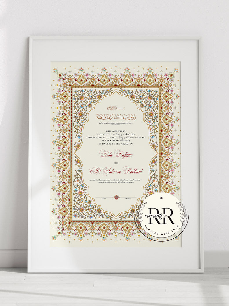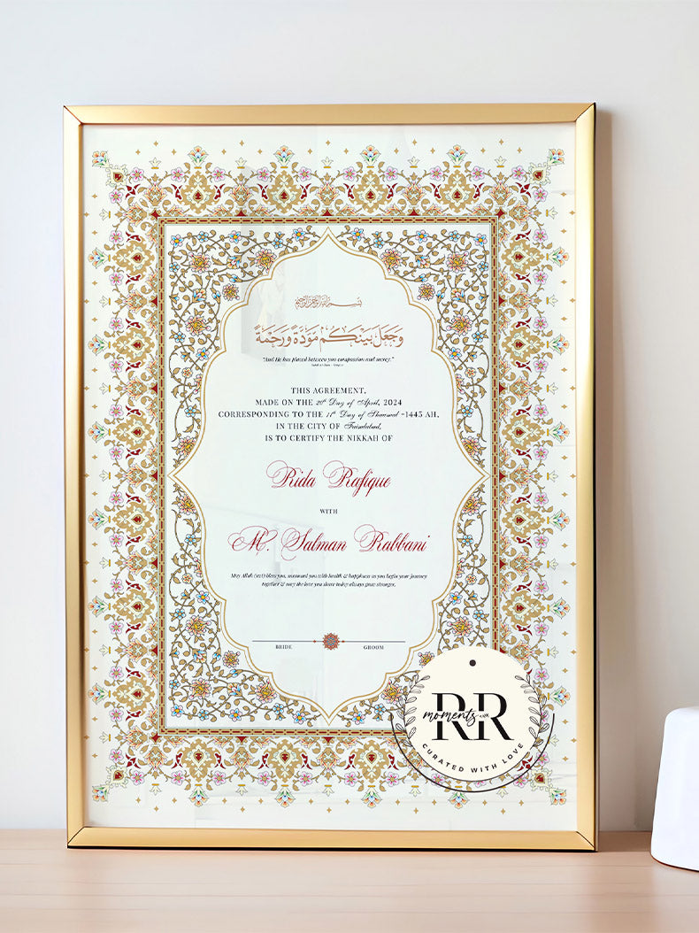 - Once you place your order we'll share the Nikkahnama Design on Whatsapp for approval before sending for printing (within 48 hours of placing the order)