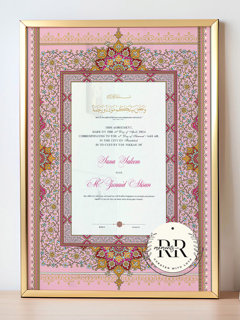 - Once you place your order we'll share the Nikkahnama Design on Whatsapp for approval before sending for printing (within 48 hours of placing the order)